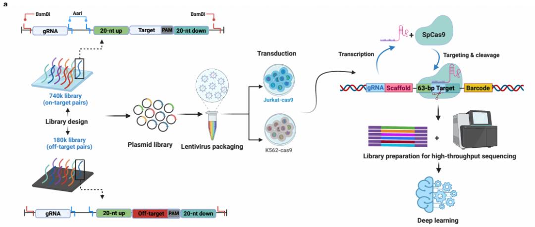 然而,人类基因组有6108个具有NGG PAM的潜在gRNA,这导致早期研究中采样的gRNA覆盖率仅为0.002%-0.009%。在这个采样范围内,已有的计算工具预测的gRNA活性和用于建模的实测gRNA活性相关性约为0.8(Spearman相关性),还有很大上升空间。并且截至目前,还没有一个从多个维度预测gRNA活性(如,gRNA切割活性、gRNA脱靶活性、gRNA切割后基因组修复的图谱)的综合工具。