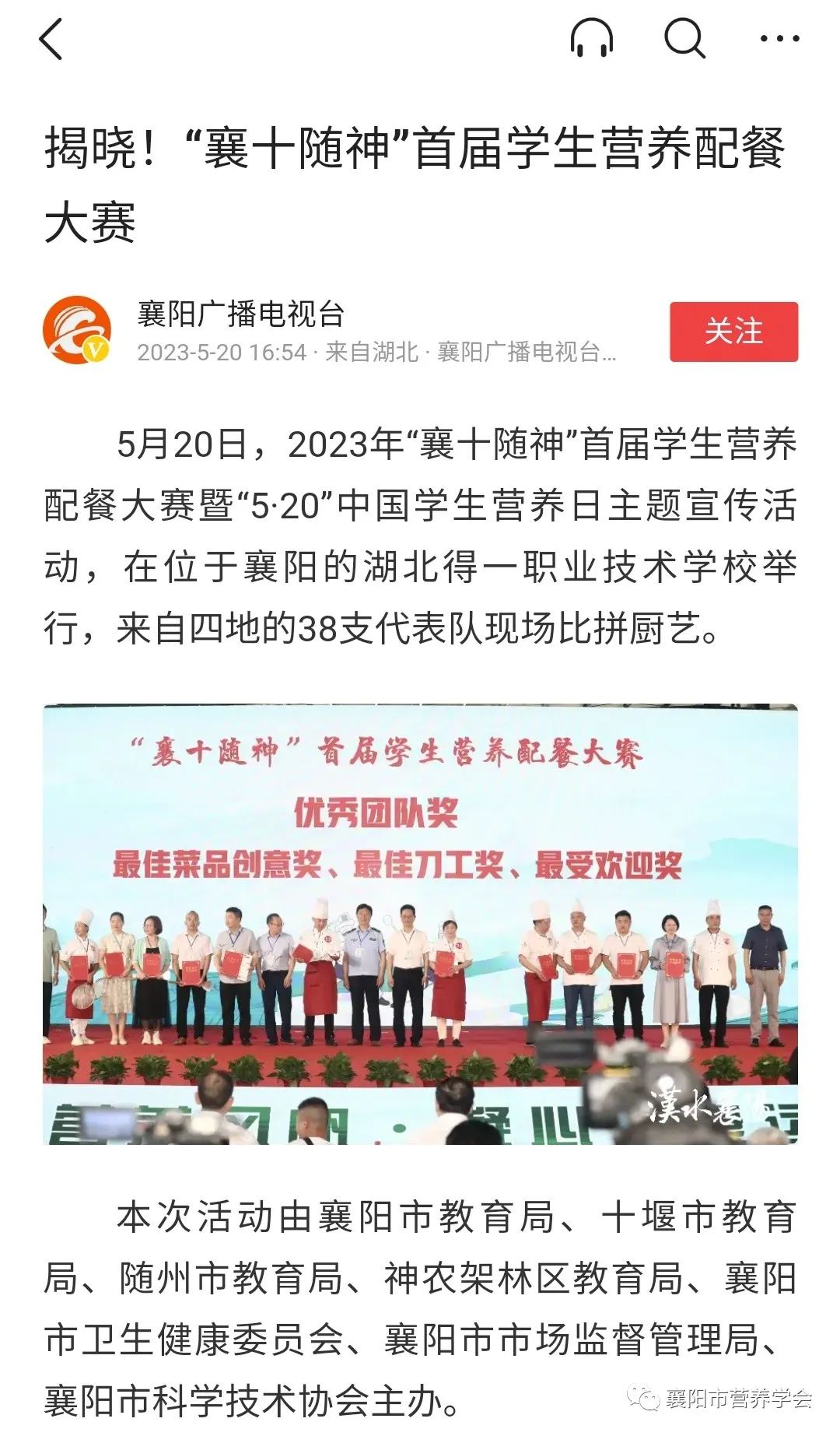 原标题:《“襄十随神”首届学生营养配餐大赛在襄阳成功举行》