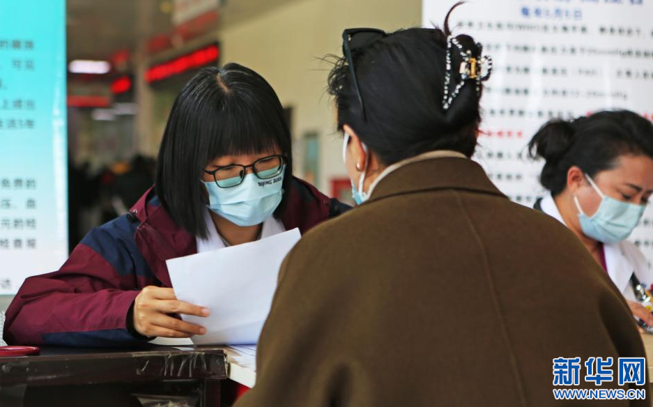 在肺动脉高压相关疾病义诊活动中,杨苏乔医生(左一)在为患者提供服务(5月5日摄)。新华社记者 邵泽东 摄
