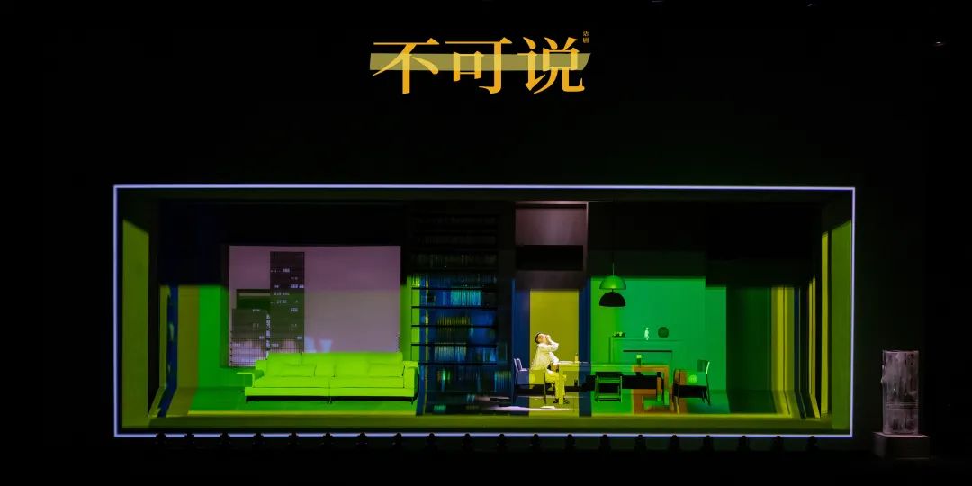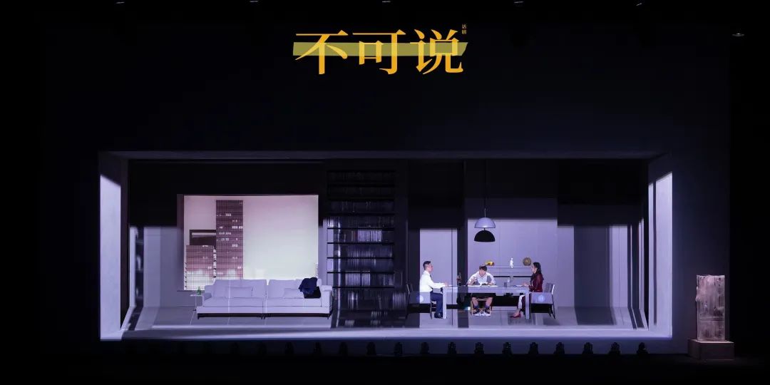 国家一级舞美设计师桑琦携手上话舞美主创团队,在《不可说》的舞台上打造了一个中性空间——一个似是而非的房间。桑琦介绍,整个空间的设计构想是出于想和观众保持一定的疏离感,在强调疏离感的动因下,在剧场原有空间的基础上,将设置阻碍隔挡。在原有剧场结构的基础上增加一个小框架,观众透过小框架来看戏,产生聚焦作用,增强观察、审视的意味。空间质感、结构也是如此,前几场戏中看上去是一个“正常的家”,但随着剧情的发展,通过陈设、光影、装置的手段让这个“家”慢慢发生着改变,让它很多地方合理性并不是那么强,最后瓦解为一个空无一物的空间。再从空的空间反转变化,空间定义的本质上也是无穷无尽的,这也符合了话剧《不可说》的内在含义。