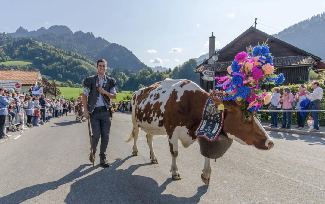 阿尔卑斯山一种古老的习俗就是庆祝牧群和牧民的回归。根据天气情况,每年节日在8月中旬至9月中旬举行,一些地区还在庆祝过程中发放阿尔卑斯山上生产的奶酪。:Bern, Switzerland : myswitzerland.com近距离感受瑞士奶牛的生活
