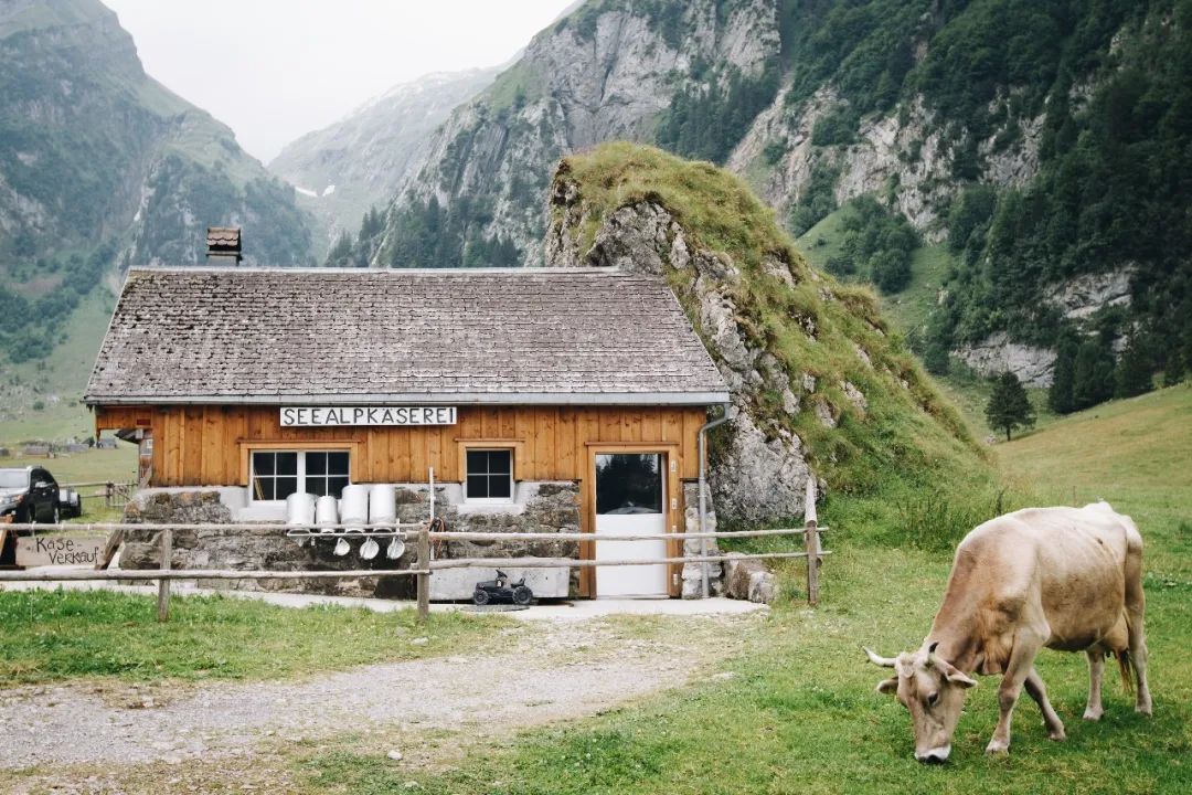 只有夏季在阿尔卑斯山农场里生产的奶酪才有资格称为阿尔卑斯山奶酪,大多数瑞士阿尔卑斯奶酪都是根据AOP(Appelation d'Origine protégée)规格生产的,保证奶酪100%来自原产地。: Seealpsee(cheese factory), Switzerland : unsplash (@Claudio Schwarz)参观Kabier农场,不仅能够围观奶酪制作过程,还可以在工作人员的讲解下了解牛的住宿条件、日常按摩护理、喂养之道和农场品牌背后的故事,然后亲自尝试给奶牛按摩、帮忙挤奶或者喂奶牛吃草。