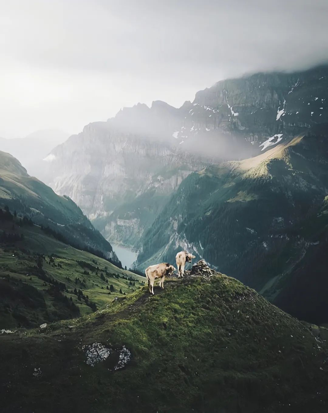 马特宏峰位于瑞士瓦莱州(Canton of Valais)小镇采尔马特(Zermatt),山高4478米,人称「欧洲山王」。:Zermatt Matterhorn, Switzerland : @andybaier (via IG)在雪朗峰(Schilthorn)的奶牛,一抬头就是阿尔卑斯山最长的索道。空中缆车里的人们在看风景,地上草甸上的奶牛在看他们。