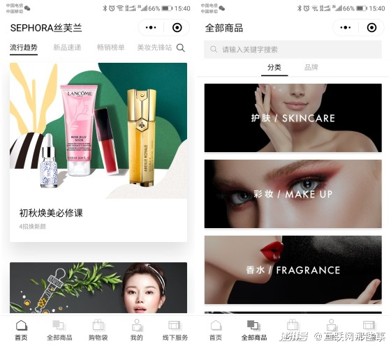 线上购物刚风靡,丝芙兰便上线电商网站并转型移动端,又压准了微信生态的入局时机,开发出微信小程序的商业潜能,做到了“用户在哪,丝芙兰在哪”。