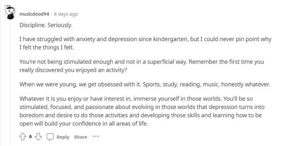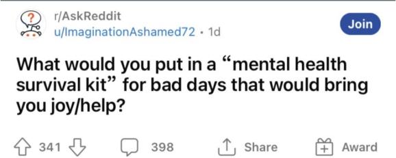 相信每个人在生活中都曾受过不良情绪的困扰。有时,简单的几句自我安慰似乎并不能帮我们轻易走出阴霾,内心仍会感到焦虑和恐惧。这时,拥有一个对抗负面情绪的情绪百宝箱就显得格外重要。近日,reddit上的网友分享了10个有助于心理健康的小妙招,评论区也分享你的对抗负面情绪的小tips吧~