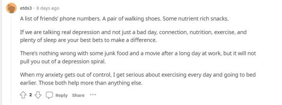 在漫长的一天工作之后,吃些垃圾食品和看场电影并没有错,但它不会把你从抑郁症的漩涡中拉出来。