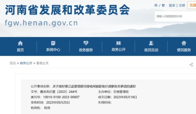 按照国家发展改革委《关于第三监管周期省级电网输配电价及有关事项的通知》(发改价格〔2023〕526号)、《关于第三监管周期区域电网输电价格及有关事项的通知》(发改价格〔2023〕532号)精神,为做好第三监管周期河南电网输配电价调整工作,现就有关事项通知如下。