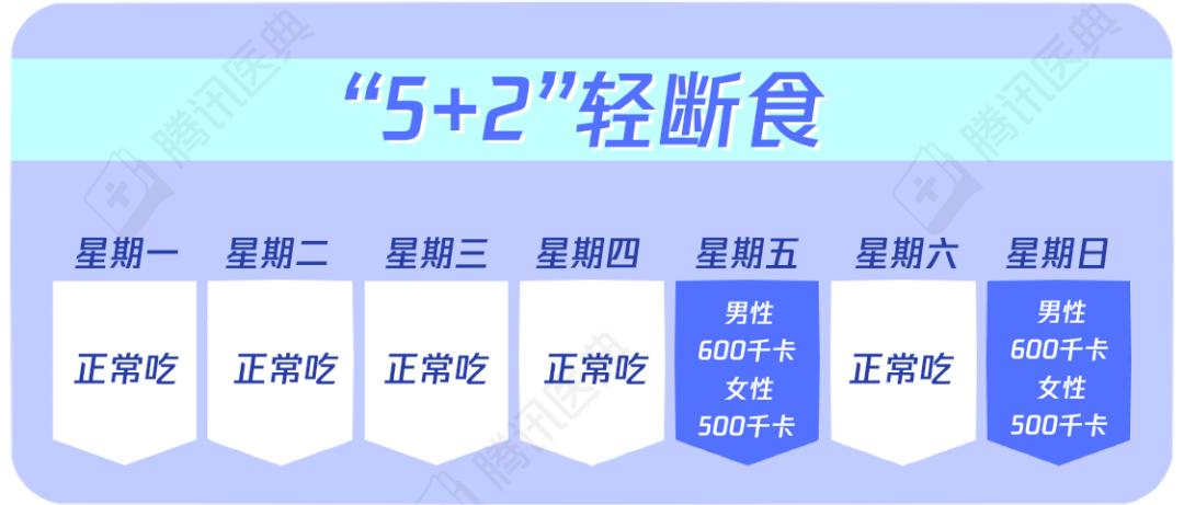 这其中,5+2轻断食相对而言更好操作些,非连续的两天进行断食,对于平时需要工作和学习的人来说,更为友好,可以随时调整断食日。比如,你可以选择周五和周日进行断食,这样,工作日的时候就不会因为肚子饿而影响工作和学习。