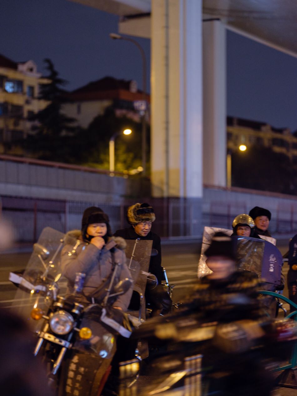 2020年冬,上海高架下的骑行者。澎湃新闻记者 周平浪 图