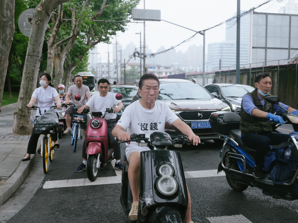 2022年夏,上海路口,众多种类的交通工具。澎湃新闻记者 周平浪 图