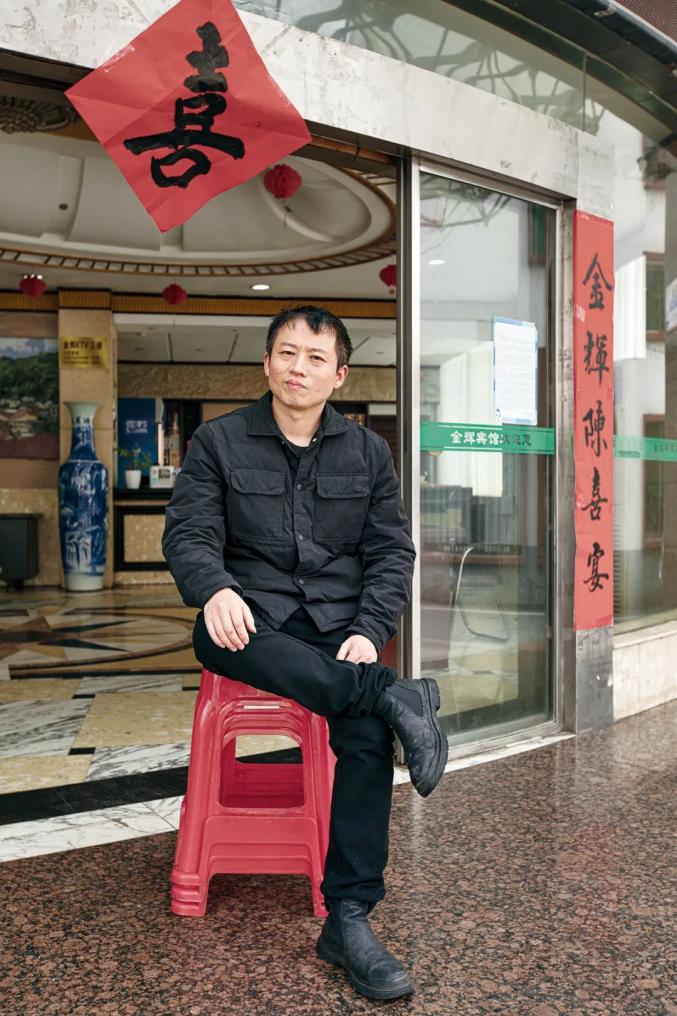 浏阳市澄潭江镇金辉宾馆的总经理欧阳雪峰。|图片:王晓东与浏阳市南部的诸多乡镇一样,手工为主的花炮制作是澄潭江镇的传统支柱产业,欧阳父亲早年积累的财富有一部分也得益于在镇上经营花炮厂。2023年春天,这些浏阳的花炮工厂因为春节“禁燃”政策松动、烟花大卖而备受关注。今年春节恰逢新冠疫情的封控解除,鞭炮和烟花供不应求,镇上流传着各花炮厂一个月清空了几年的库存、突然赚到钱的故事。