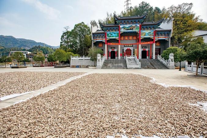 澄潭江镇的欧阳宗祠。祠堂前晾晒的是制作花炮的原料。| 图片:王晓东花炮行业的“传统”还体现在公司历史和管理上。知名的大型花炮企业几乎都拥有“创始人从农村花炮厂起家”的历史,当下也由家族成员运营,并处在现代化公司管理改制的进程中。