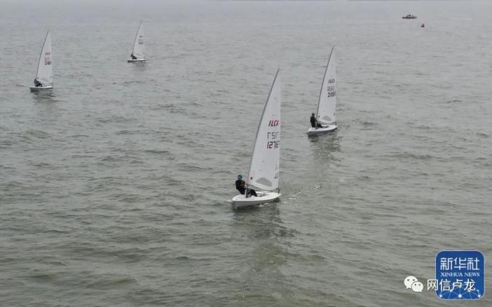 ↑ 参赛选手在女子ILCA6级场地赛中。新华社发(张伟摄)