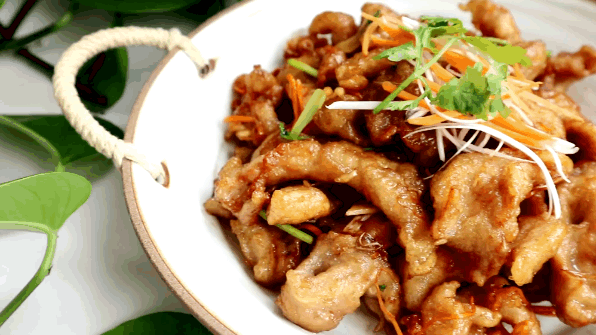 锅包肉是一道酸甜口味的菜肴。通常将猪里脊肉切片腌入味,裹上炸浆,下锅炸至金黄色捞起,再下锅拌炒勾芡即成,成菜色泽金黄,口味酸甜。小鸡炖蘑菇