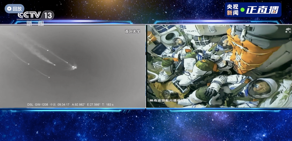 神舟十六号发射直播截图,图中右一为桂海潮。