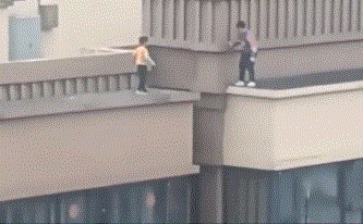 据知情人士透露,孩子是学动画片情节,用伞当降落伞。