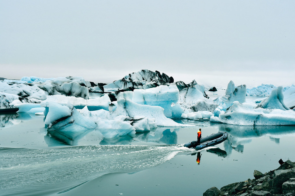冰岛的杰古沙龙冰河湖(Jökulsárlón)由冰川融水自然形成,大块的海冰不断从消融的冰川上落下,冰河湖的面积正在扩大。