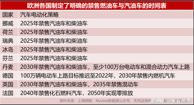 欧洲方面,欧盟层面上,已在3月28日,正式通过《2035年欧洲新售燃油轿车和小货车零排放协议》,要求在2035年前实现在欧盟销售的新车二氧化碳排放量减少100%。实际上,欧洲各国都有较为严格的碳中和目标,也已经明确了禁售燃油车与柴油车的时间表。因此,欧洲的新能源汽车市场空间较大。