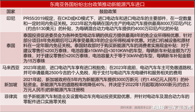 另外,东南亚的新能源汽车市场处起步阶段,马来西亚、泰国等国都推出关税减免政策,使得中国新能源汽车出口该地区,更加便利。