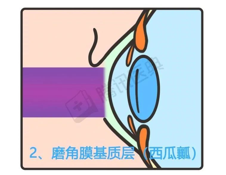 (2)根据准分子激光切削前弹力层和基质(西瓜囊),矫正近视。