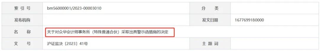 执业项目上,公司在金力泰、海欣股份、巴安水务、创世纪等6家公司的执业过程中存在不同程度问题。根据相关规定,3月2日上海证监局决定对众华所采取出具警示函的行政监管措施。