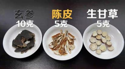 一、推荐代茶饮:玄陈饮原料:玄参10克、陈皮5克、生甘草5克。