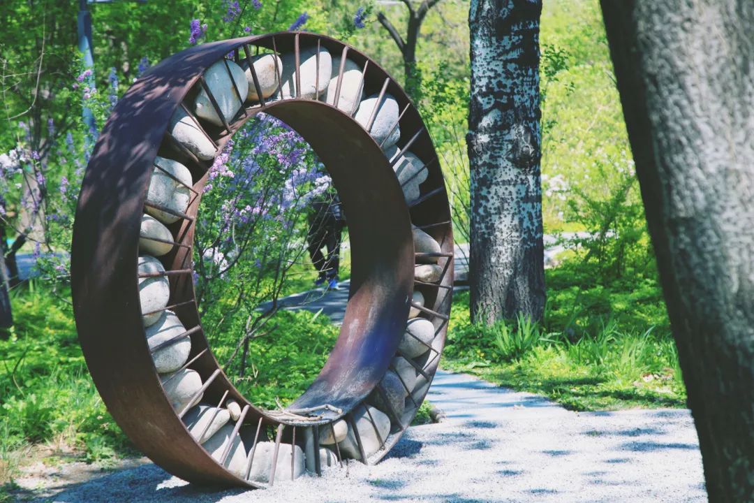 临近公园,还未进门,就能听到河水哗哗的声音,往里走走,更是满眼郁郁葱葱。园内植被丰富,各种花木连成一片,即便花期已过,满目的绿色还是很养眼。