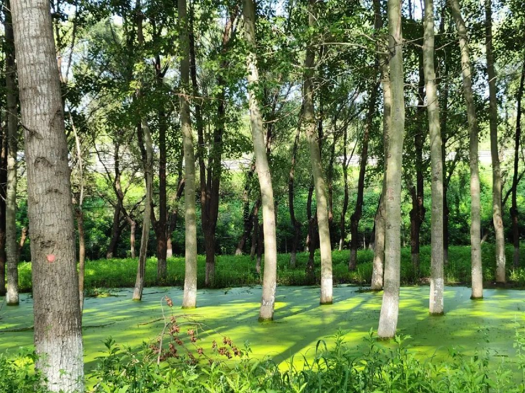 东郊湿地公园的森林覆盖率非常高,而且有种原生态的感觉,在公园里完全感觉不到有人工修建的痕迹。这里的植被种类也特别丰富,除了一些在华北地区常见的乔木之外,还有很多在北方难得一见树木,如水杉、红豆杉等。