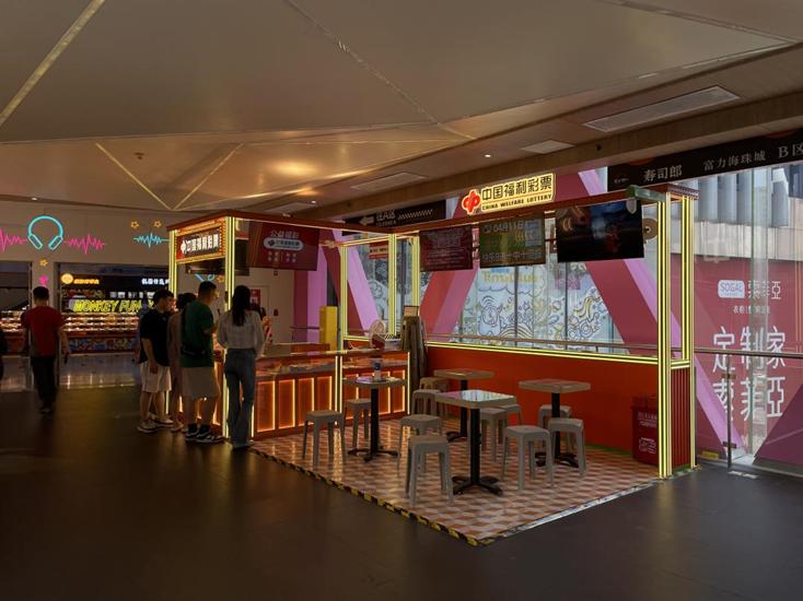 一家幸运好玩的店。(图/@公益体彩)今年4月中旬,一场以“体彩快乐占领计划”为主题的活动在全国各商圈展开,年轻人打卡的标配早已不是奶茶+夹娃娃,而是奶茶+彩票。
