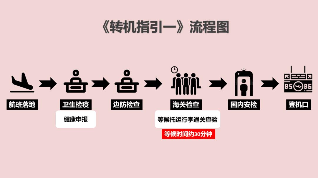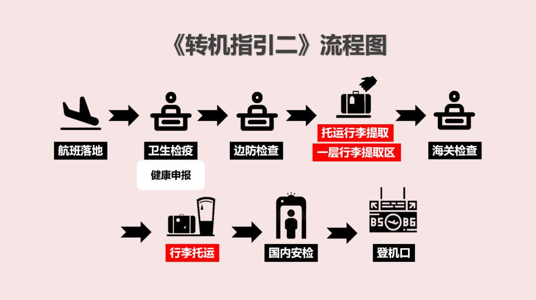 注:在始发站无托运行李的旅客,到达广州后不需要在海关等候区等待,可直接通关。《转机流程图一》详情
