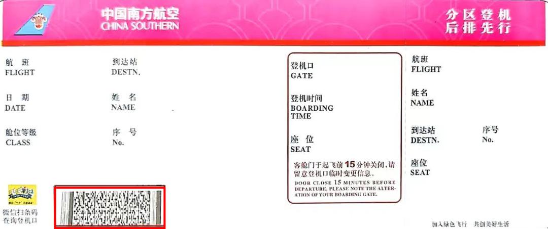 登机牌扫码区域为上图红框位置— 南航中转,粤转越顺 —