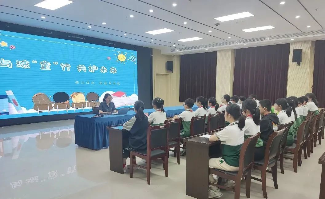 衢江区妇联、区法院、区教育局联合开展与法“童”行 护航成长暨2023年“六一欢乐颂 童心法治行”普法活动,邀请32位小学生走进法院,沉浸式体验模拟法庭,引导学生从小树立知法、学法、懂法、守法的意识,增强学生法治观念。