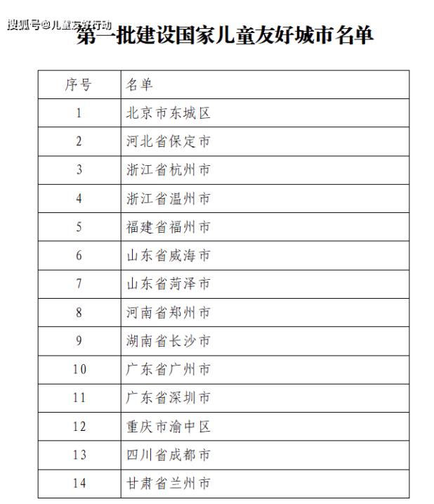 2022年6月,14座城市入选全国第一批建设国家儿童友好城市名单。四川省成都市位列其中。