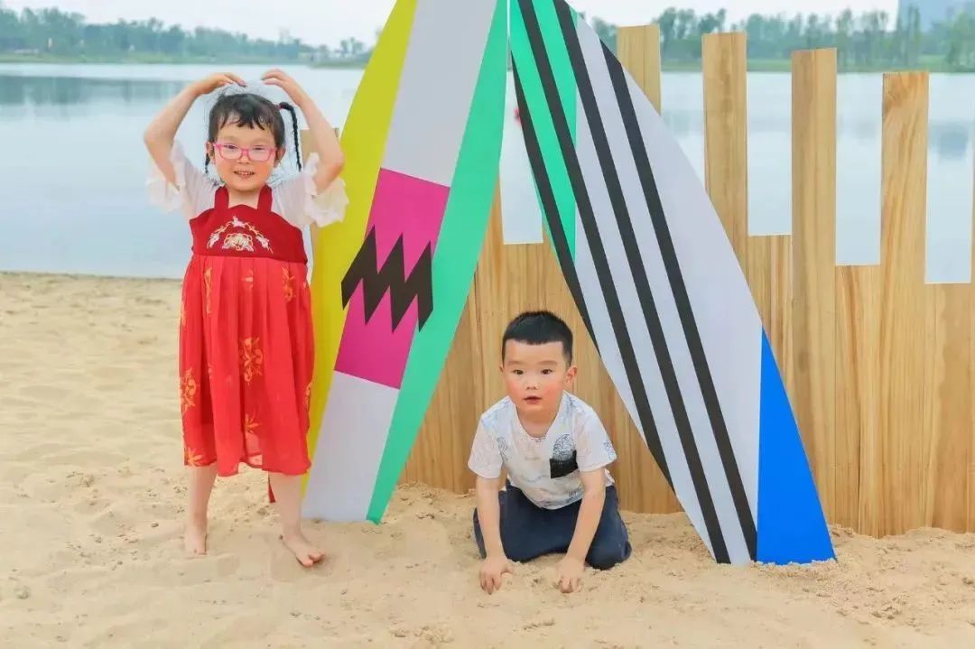 银沙滩乐园:超4百⽶的湖岸线沙滩,