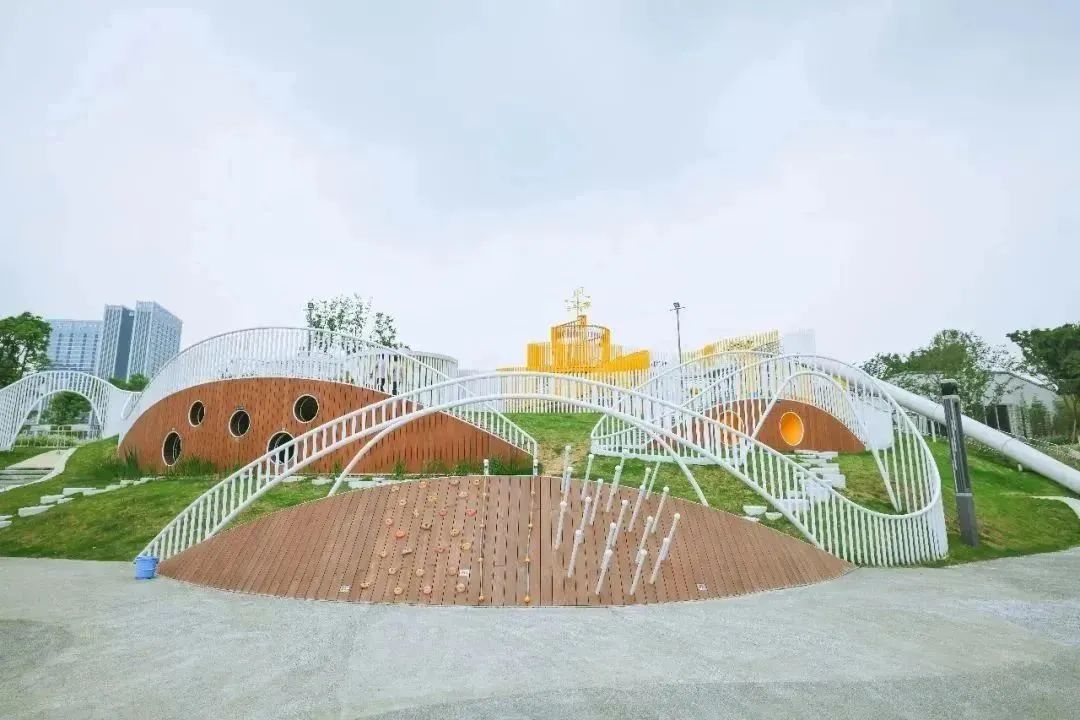 融⼊攀爬、滑梯、秋千等多种游玩设施,