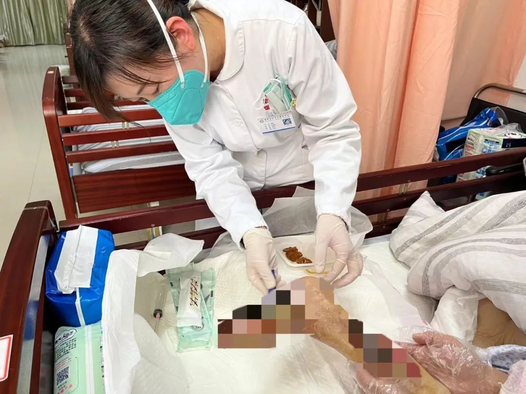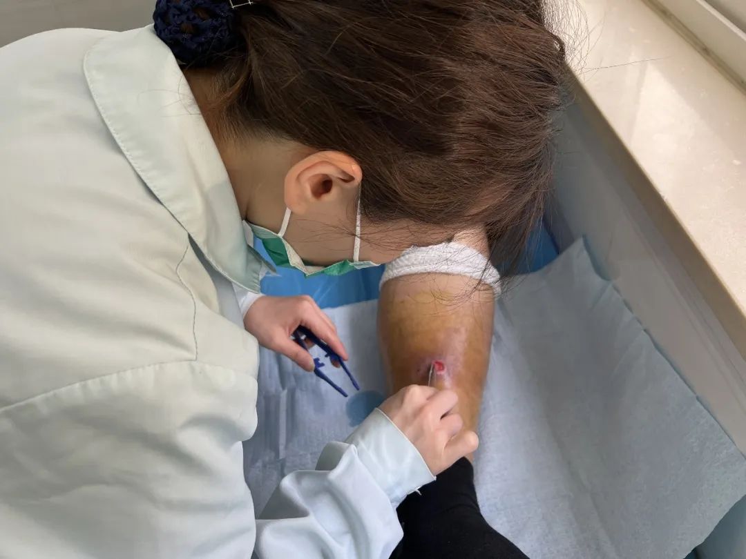 为了更全面地为患者进行治疗和护理,护理部随即与上级联合门诊联系,转诊至吴淞医院伤口护理门诊进行进一步诊疗。患者经过清创、穿刺等治疗后,转回中心伤口护理门诊进行后续治疗。护士们通过一系列的治疗措施后,不仅加快了伤口愈合,缩短了治疗周期,同时也解决了患者多次往返诊疗的问题。在中心伤口护理团队的精心护理下,患者的伤口成功痊愈。