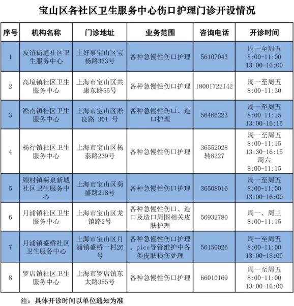 原标题:《【强基增能】伤口护理门诊,抚平创伤暖人心(附宝山社区伤口护理门诊一览表)》