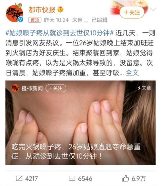 叶际琴(1992—),女,护师,本科,海军军医大学第二附属医院妇产科护士,主要从事妇产科护理。近日,话题#姑娘嗓子疼从就诊到去世仅10分钟#登上热搜。起因是一位26岁姑娘吃完火锅后诱发急症,心跳骤停,呼吸停止,从就诊到抢救失败,短短10分钟,一个年轻的生命就此陨落,令人惋惜。