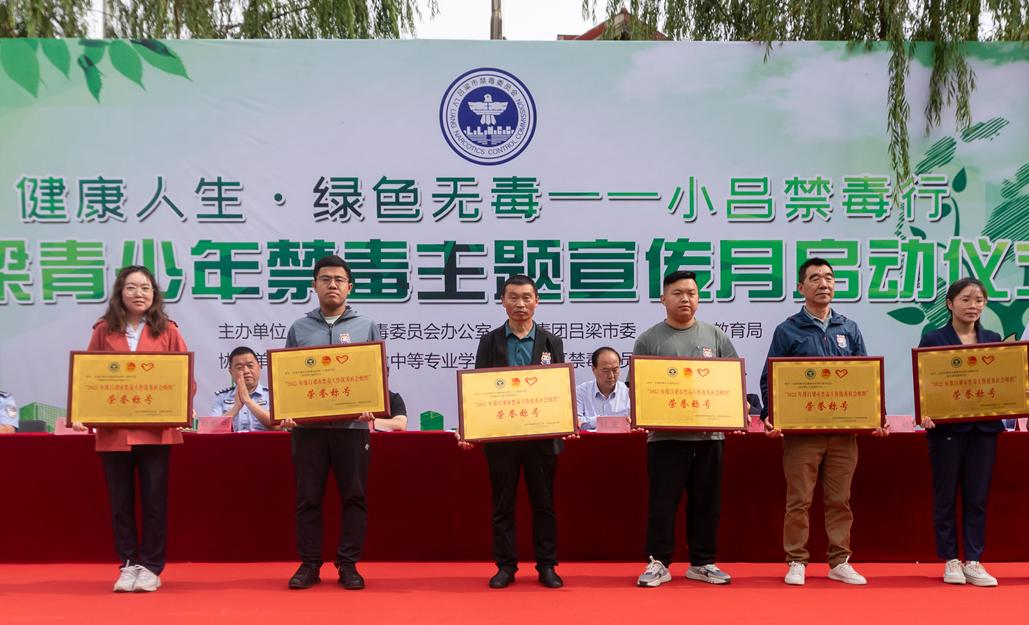 启动仪式上,6个单位被评为2022年度吕梁市禁毒工作优秀社会组织单位并颁发了奖牌,与会人员进行了禁毒集体宣誓,获奖代表、“小吕禁毒行”主题月启动仪式承接方负责人和青年学生代表分别作了发言,市教育局副局长杜宏亮宣读《吕梁市禁毒委员会办公室、吕梁市教育局、共青团吕梁市委关于开展“健康人生·绿色无毒”小吕禁毒行青少年禁毒宣传月的工作方案》。省戒毒所四级高级警长、山西蒲公英禁毒宣讲团团长张俊和应邀为全场师生进行禁毒主题宣讲。