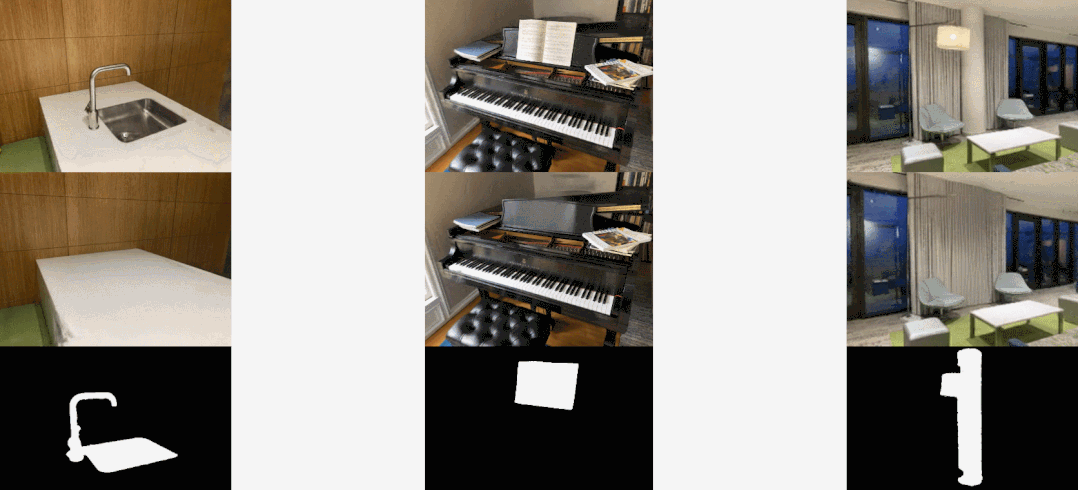 下面为效果展示,在移除一些对象后,还能与其周围场景保持一致性: