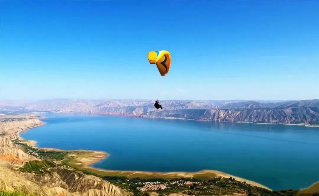 纵身跃入蓝天,从高空中俯瞰大地,在广阔明朗的天空下俯瞰蓝色黄河,享受“脱离”地球引力的美妙,让身体和心灵得到一次彻底的释放。