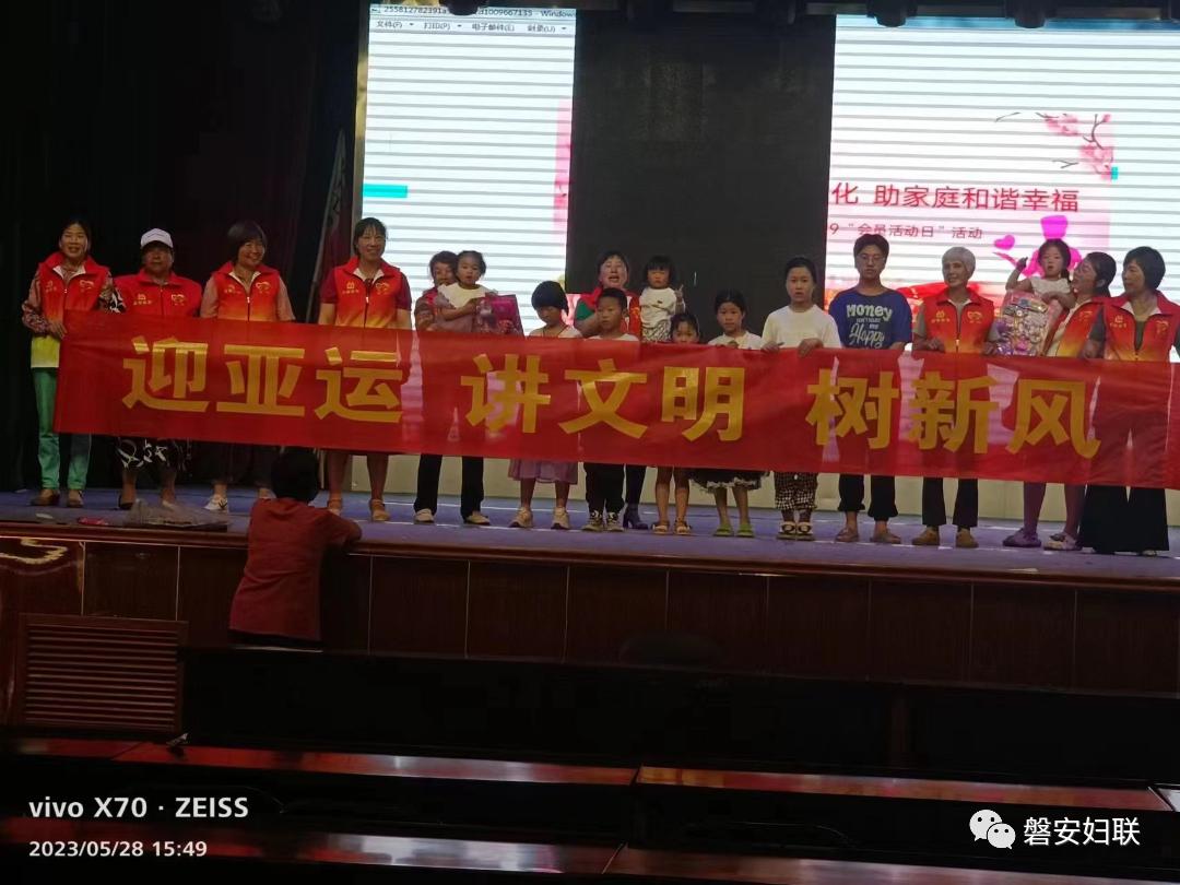 双溪乡联合东阳叶子帮帮团开展“儿童友好迎亚运 童创未来助成长”庆六一主题活动,帮帮团的阿姨们与小朋友们一起参与文艺演出。