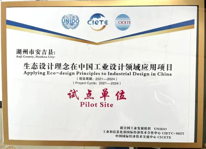 近日,在2023工业绿色发展大会上,湖州市安吉县获联合国工业发展组织“生态设计理念在中国工业设计领域应用项目”试点单位授牌,为全国三个试点单位之一,全省唯一!