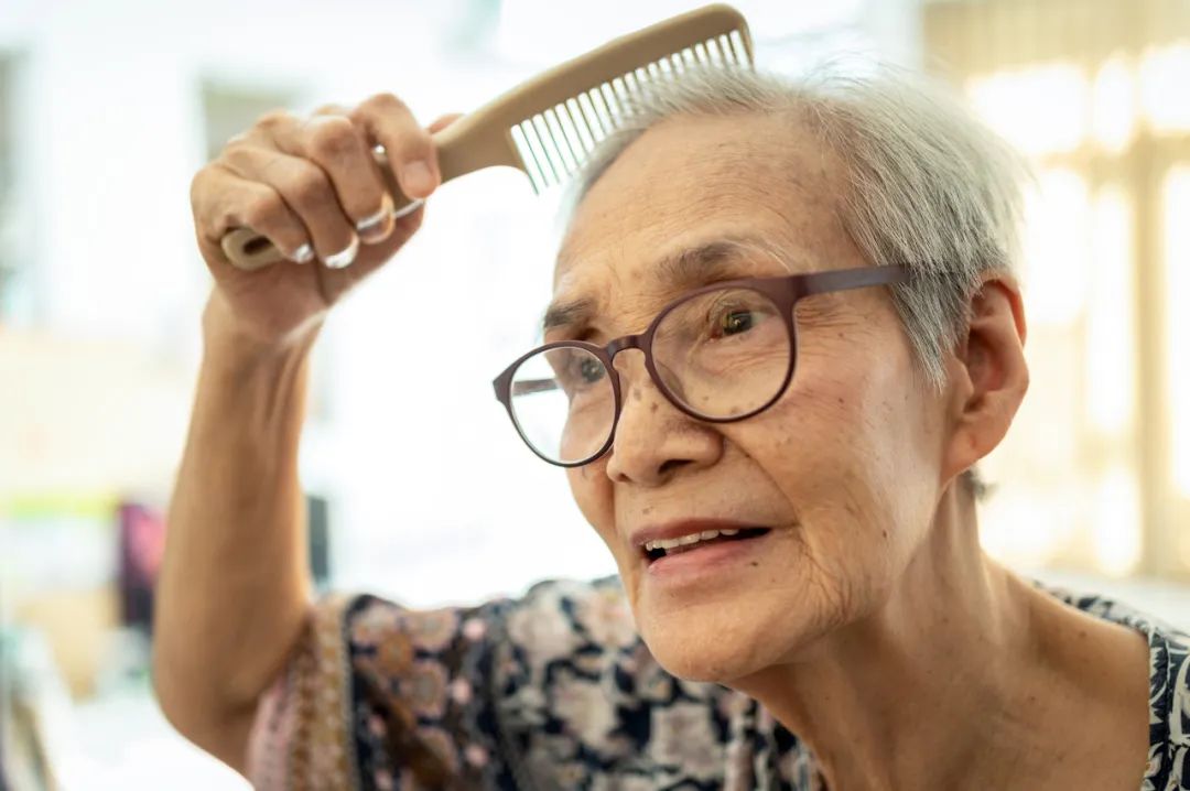 发常梳:将双手掌置于前额,双手十指顺势向后,然后由前额开始用手指向后梳头发,经后脑到颈部。早晚各做数次。