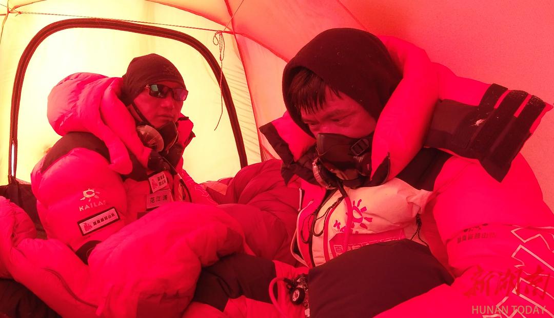 5月19日,范江涛和谢如祥在C4营地。图片来源/新湖南客户端
