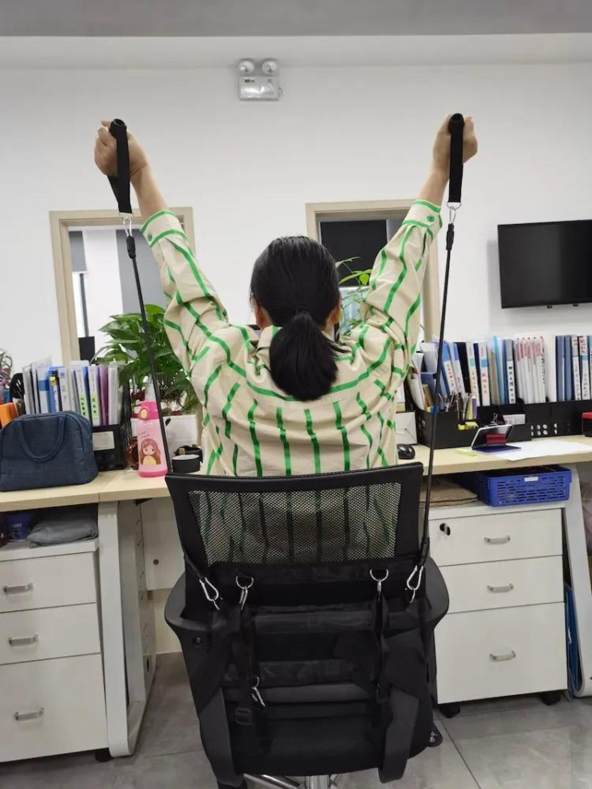 摆腿器:员工坐于椅子上,将双脚悬停在摆腿器踏板上,双手平举不借助外力,依靠腹部发力控制双脚,工作的同时轻松锻炼核心力量。迷你踏步机:改善提升心肺耐力,预防过劳猝死。