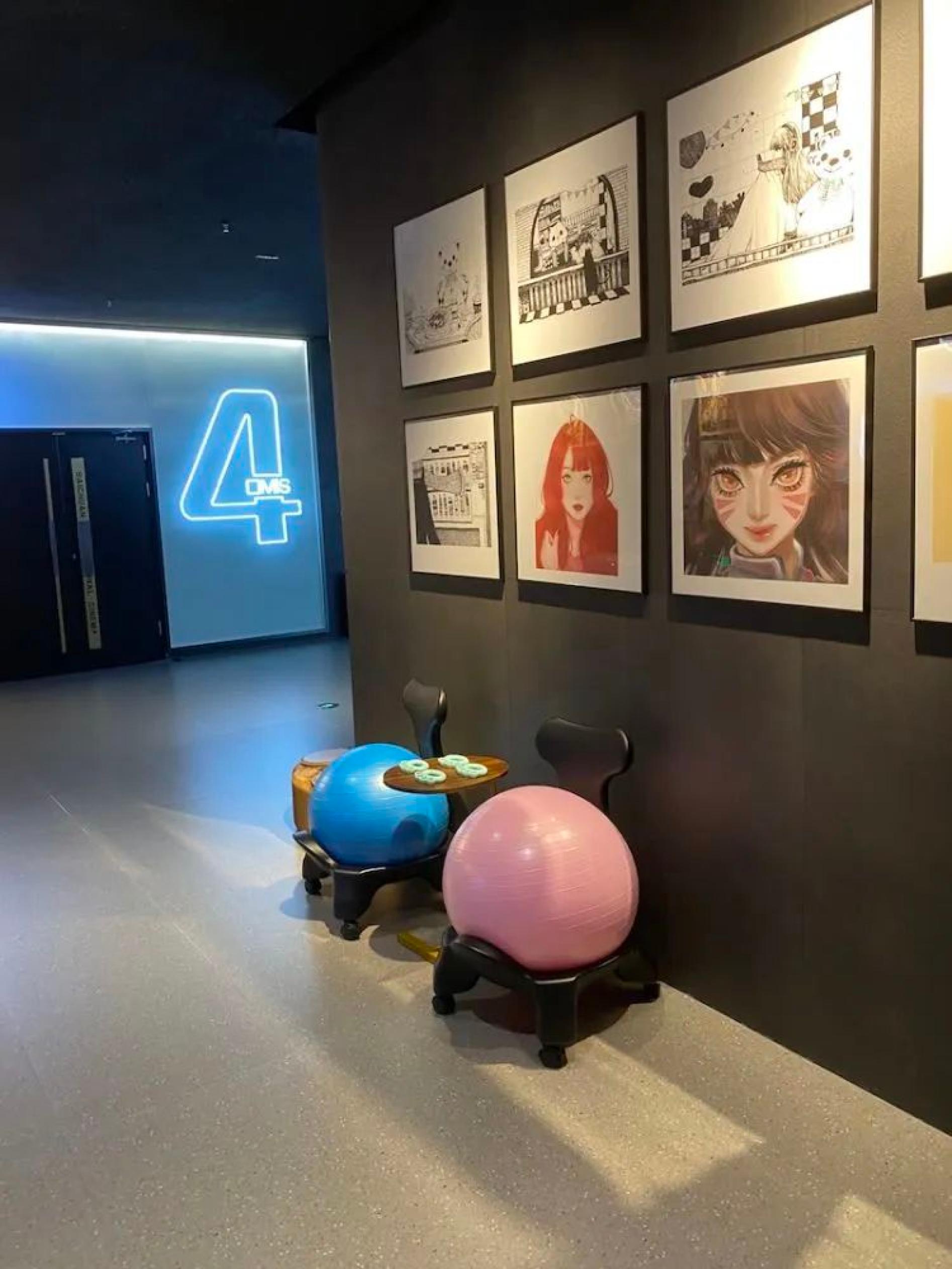 在影城通道及休息等待区,划出公益区域提供小型健身器械,如踏步机及握力器、瑜伽球/瑜伽椅等,供市民利用碎片化时间锻炼。