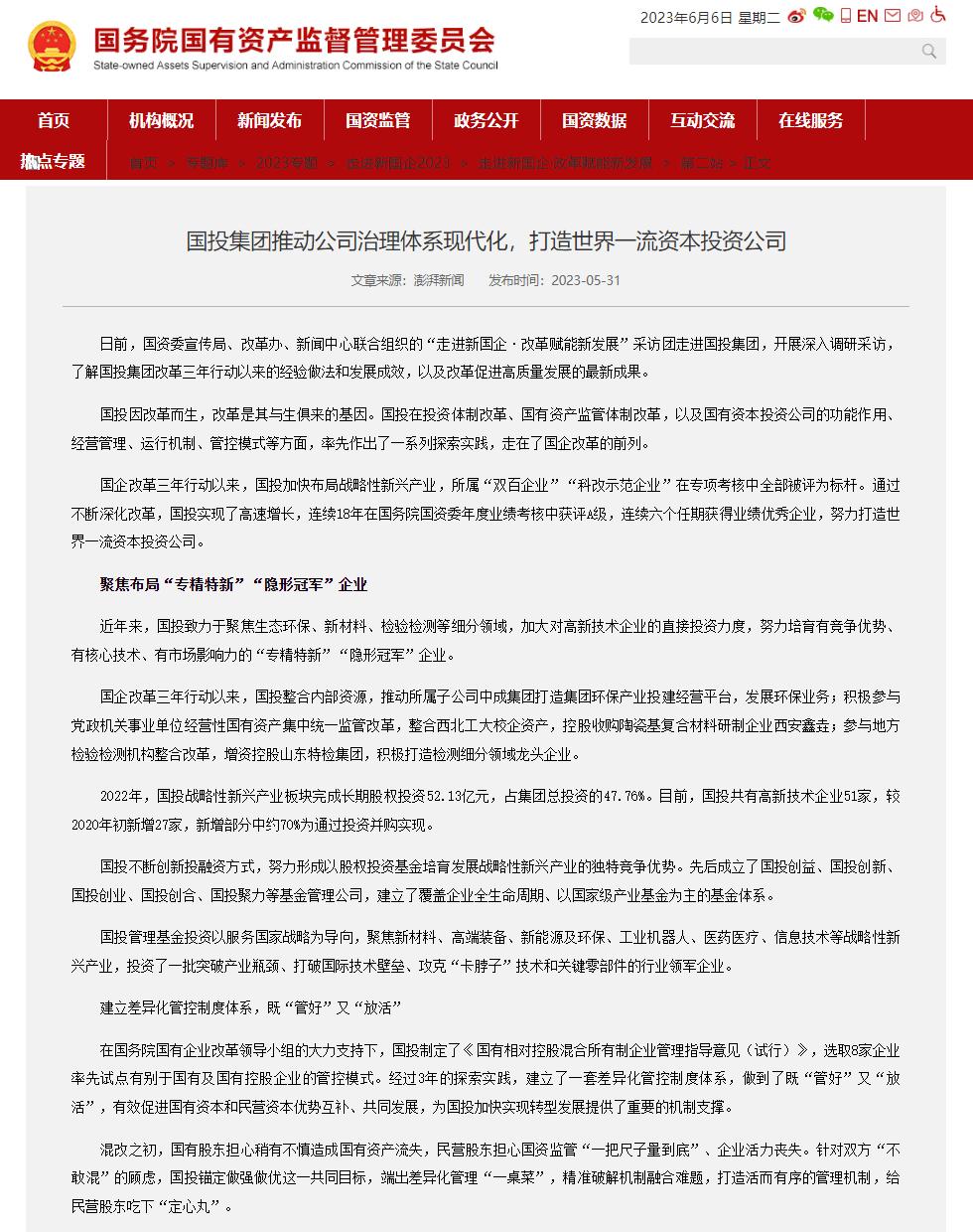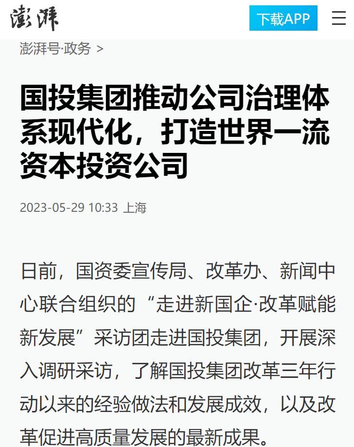 澎湃新闻报道国投集团推动公司治理体系现代化,