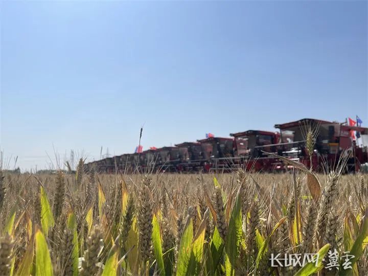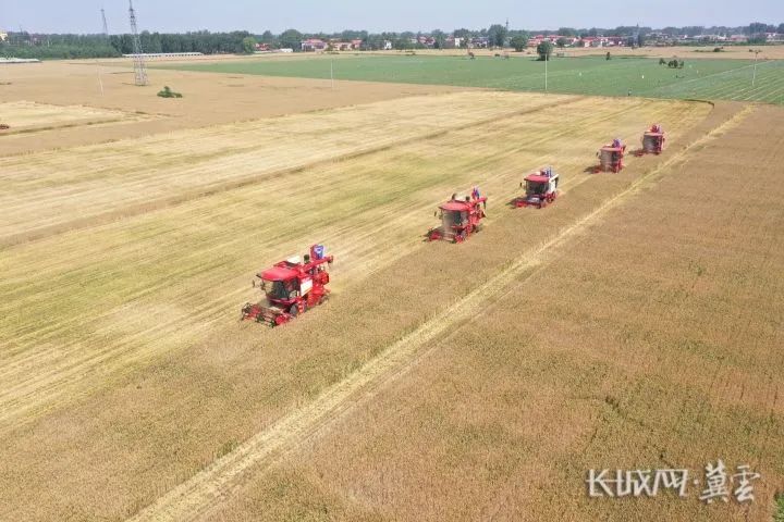 6月6日,邯郸魏县60万亩小麦成熟,一排排收割机整装待发。长城网·冀云客户端记者 贾宏博 摄长城网·冀云客户端6月6日讯(记者 霍文龙 张隽)麦浪滚滚丰收忙。今天上午,20多台联合收割机一字排开,随着一阵阵轰鸣声响起,邯郸魏县北皋镇东张岗村率先开镰,邯郸全市530万亩小麦陆续开始收割。这也标志着河北省小麦大面积机收作业将从南到北、自西向东全面展开。