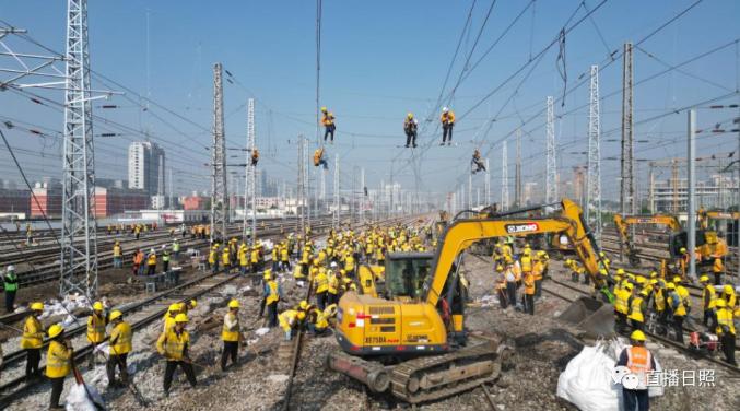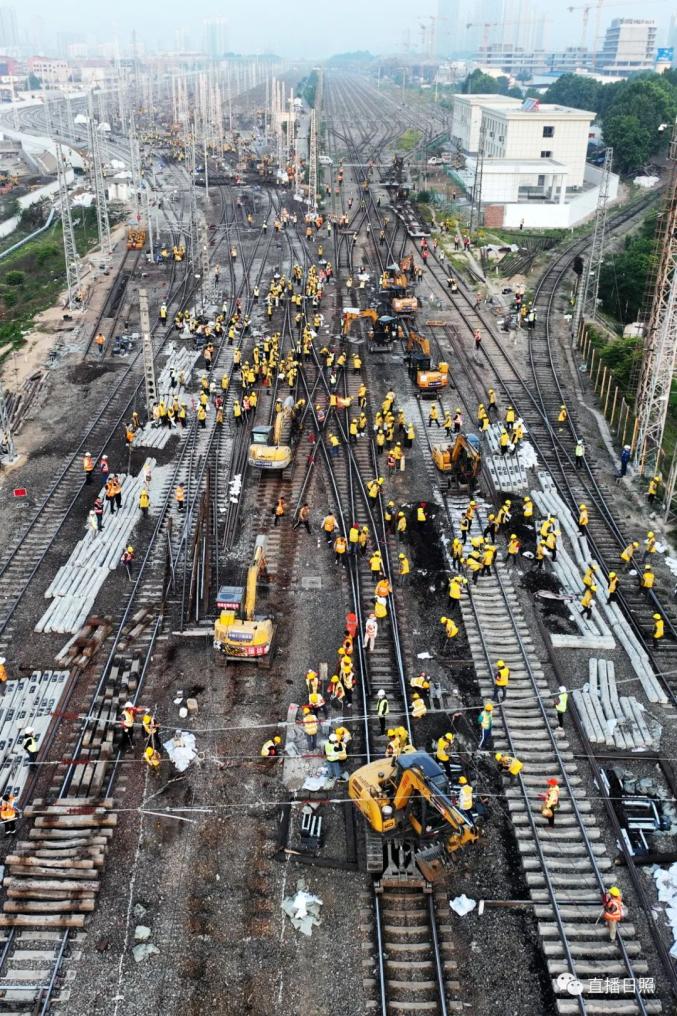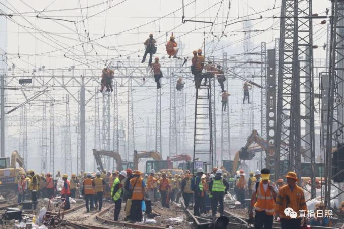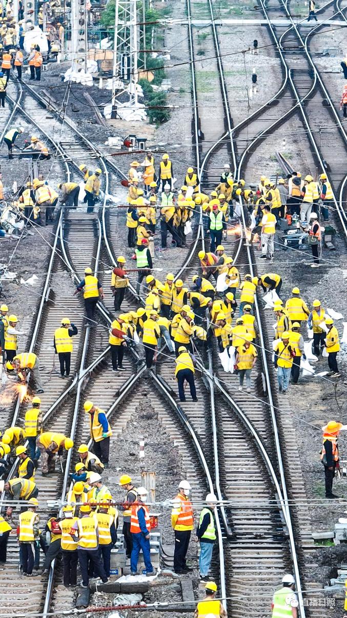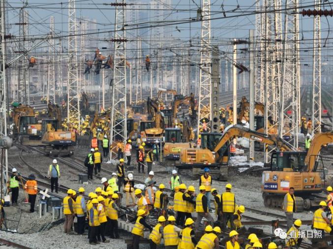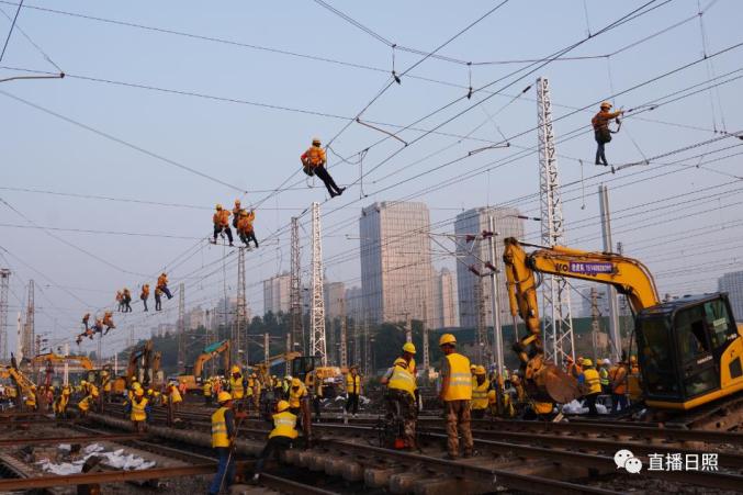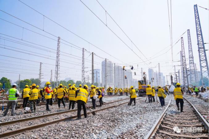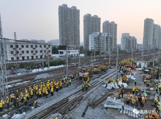 直播日照从中国铁路济南局集团有限公司(以下简称国铁济南局)获悉,本次施工为营业线Ⅰ级施工,施工过程涉及多个专业交叉作业,组织难度大、安全风险高,需要在10小时的封锁时间内拆除610米铁路线路和10组道岔,铺设新线路1006米,插入新道岔10组,并同步完成铁路信号、接触网、通信、车辆等多专业施工任务。
